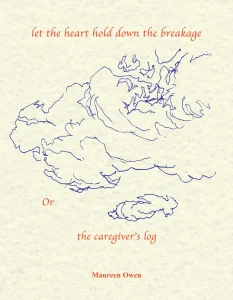 Maureen Owen is editor of Telephone Books and author of over ten poetry collections, including American Rush, a Los Angeles Times Book Prize finalist, and AMELIA EARHEART, a recipient of the American Book Award. Formerly co-director of the Poetry Project, she now lives in Denver and teaches at Naropa University. Most recently, she is the author of EDGES OF WATER (Chax Press, 2013).